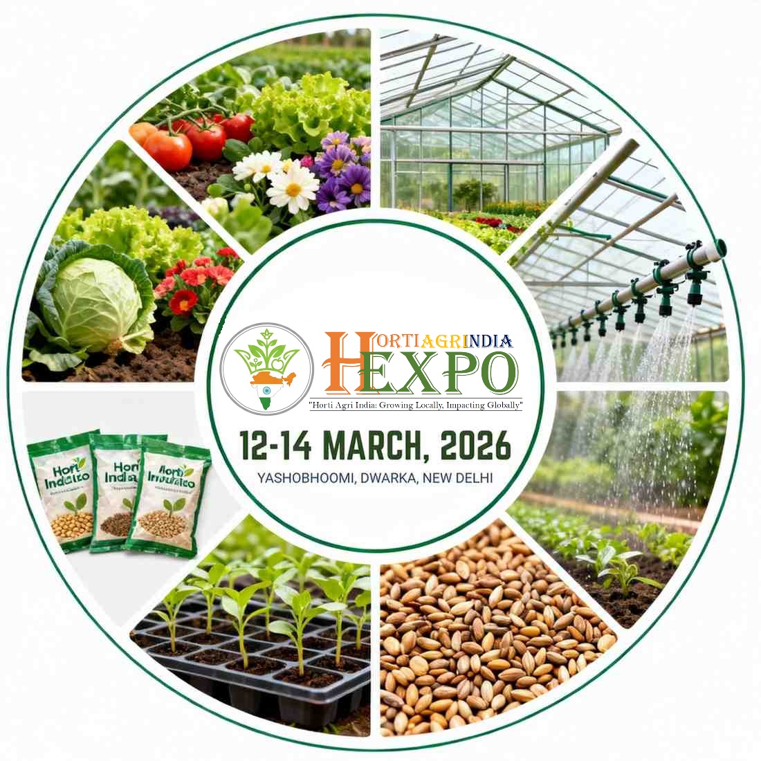 Horti Agri India Expo 2026, from 12–14 March 2026 at Yashobhoomi, New Delhi, is North India’s biggest exhibition on horticulture and protected cultivation. The event focuses on greenhouse technology, irrigation & water management, crop protection, vertical farming, fertilizers, seed improvement, post-harvest solutions, landscape, and nursery business — showcasing the latest innovations driving the future of sustainable horticulture.